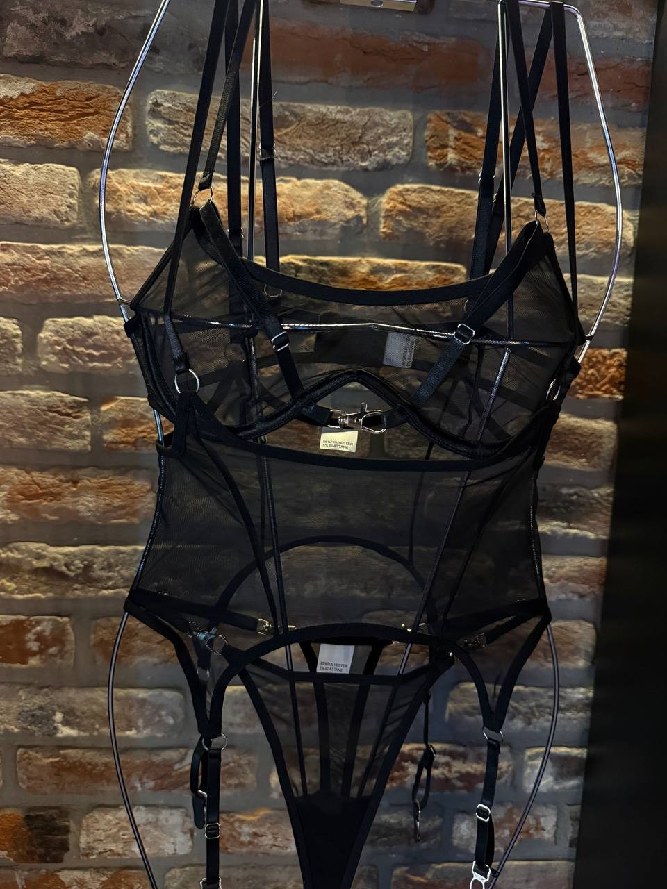Чорний мереживний корсет із фіксаторами для панчіх (розмір S/M)