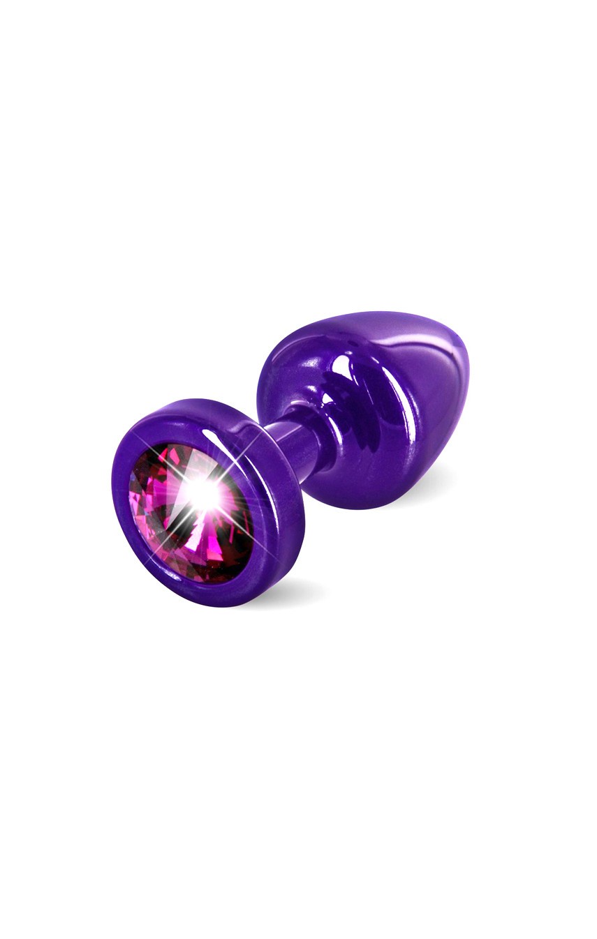 Анальна пробка S Diogol з круглим кристалом Swarovski (фуксія), фіолетова, 6 × 2,5 см
